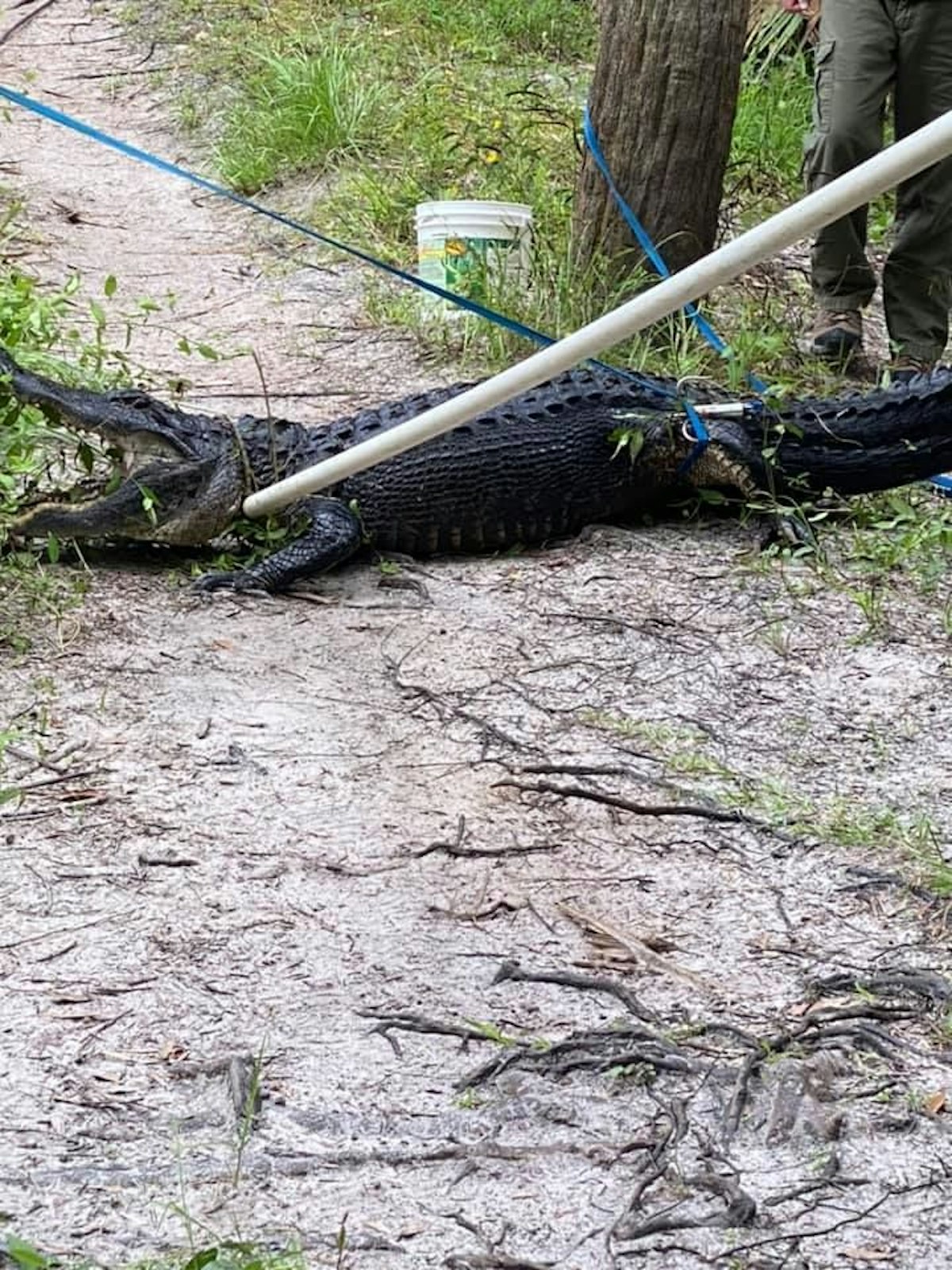 Unbeabsichtigt fiel der Radfahrer einem weiblichen Alligator direkt vor die Füße.