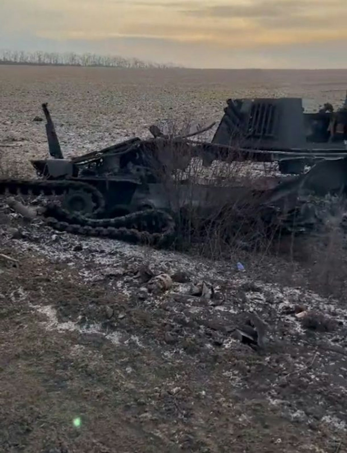 Das Artilleriegeschütz soll nahe dem Ort Berestove, Oblast Charkiw, von der russischen Armee erwischt worden sein.