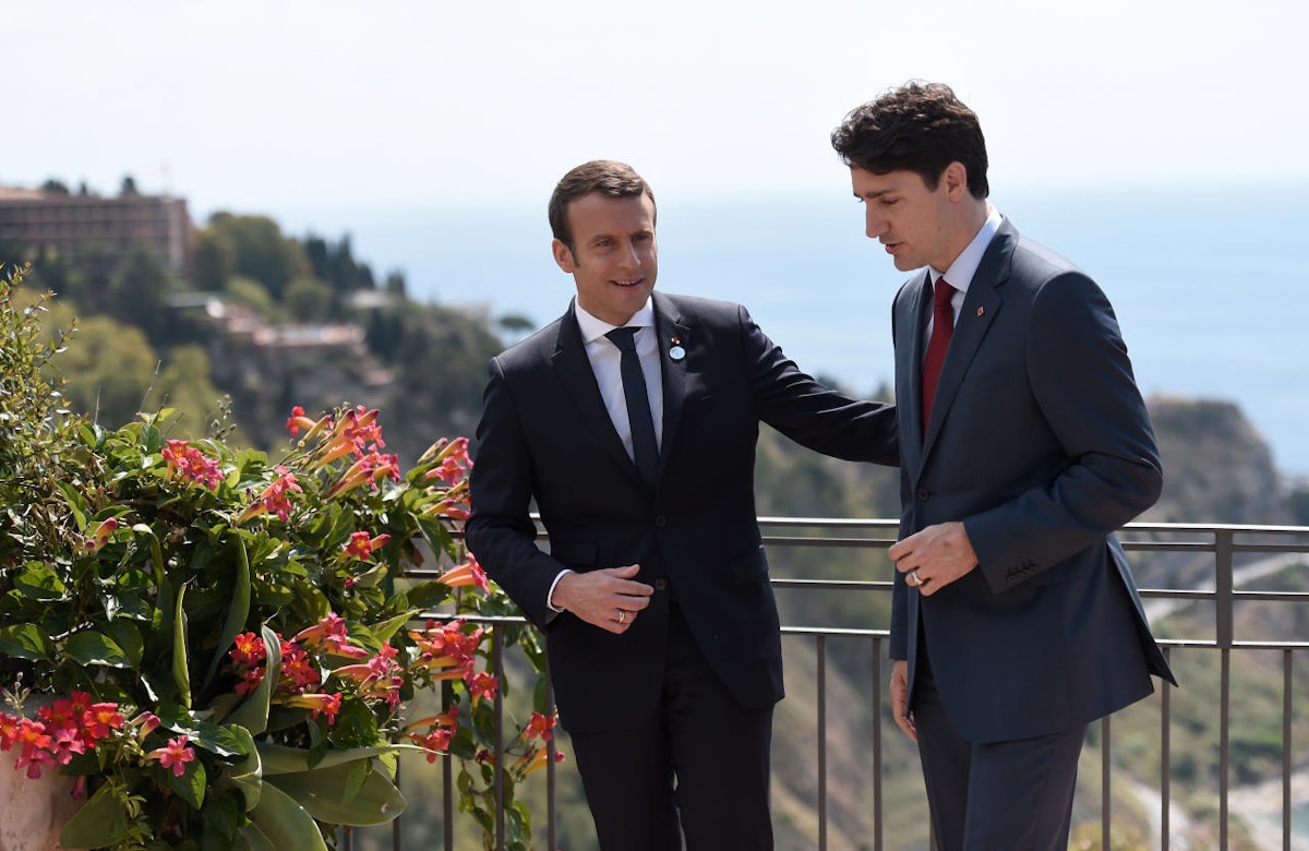 1 /7 Der Beginn einer wunderbaren Freundschaft? Emmanuel Macron (l.) und Justin Trudeau unterhalten sich vor malerischer Kulisse. (26. Mai 2017)