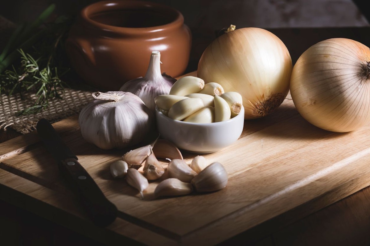 6 /6 Einen intensiven Geschmack erhältst du auch, indem du öfters mit Zwiebeln und Knoblauch dein Essen verfeinerst. Die beiden Zutaten schneiden bei Saucen und Pürees besonders gut ab.