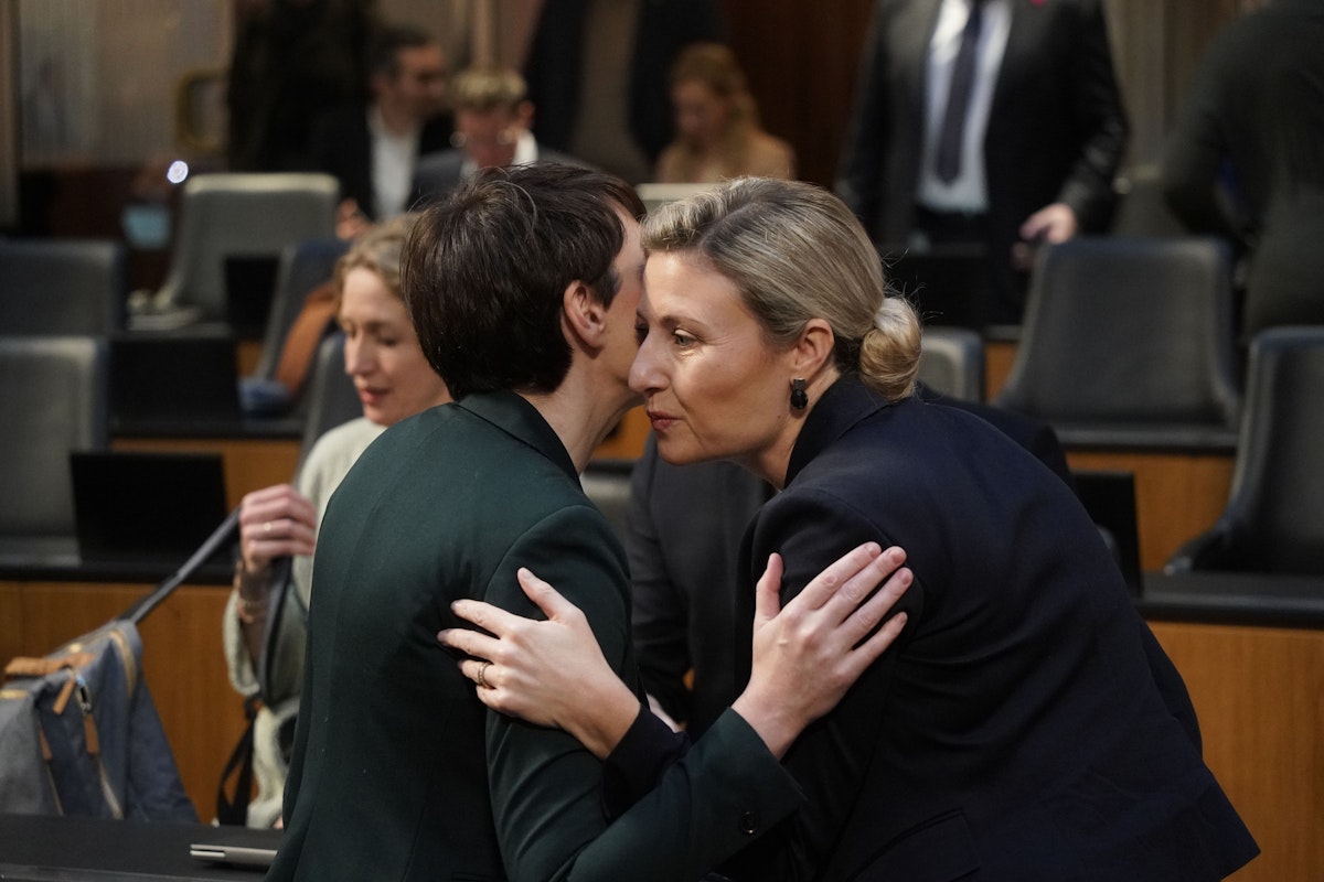 Bussi zur Begrüßung: Sigi Maurer (Grüne), Susanne Raab (ÖVP)