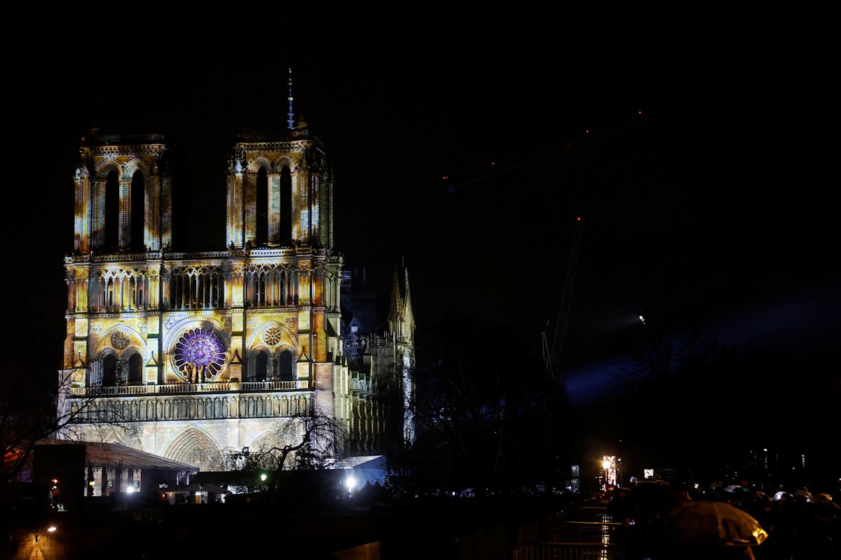 3 /17 Trotz Regen kamen zahlreiche Menschen zur Wiedereröffnung der Kathedrale Notre-Dame.