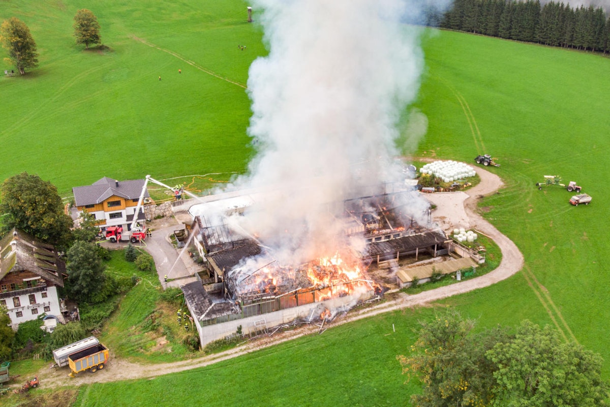 Ein Bauernhof in Hinterstoder brannte völlig ab. Ein Schwein musste beim Brand sterben.