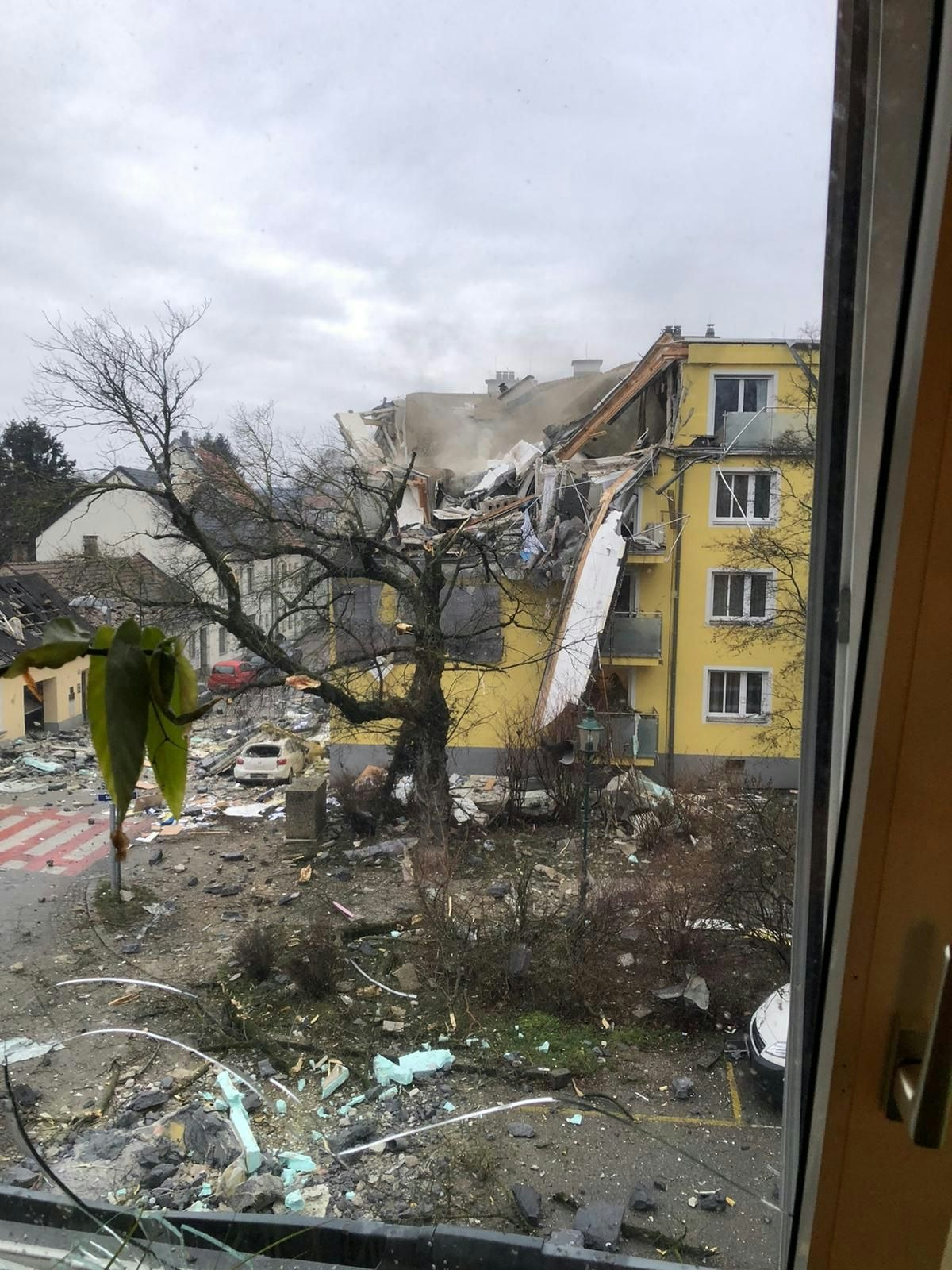 Explosion in Langenzersdorf, ganzer Wohnblock ist zerstört.