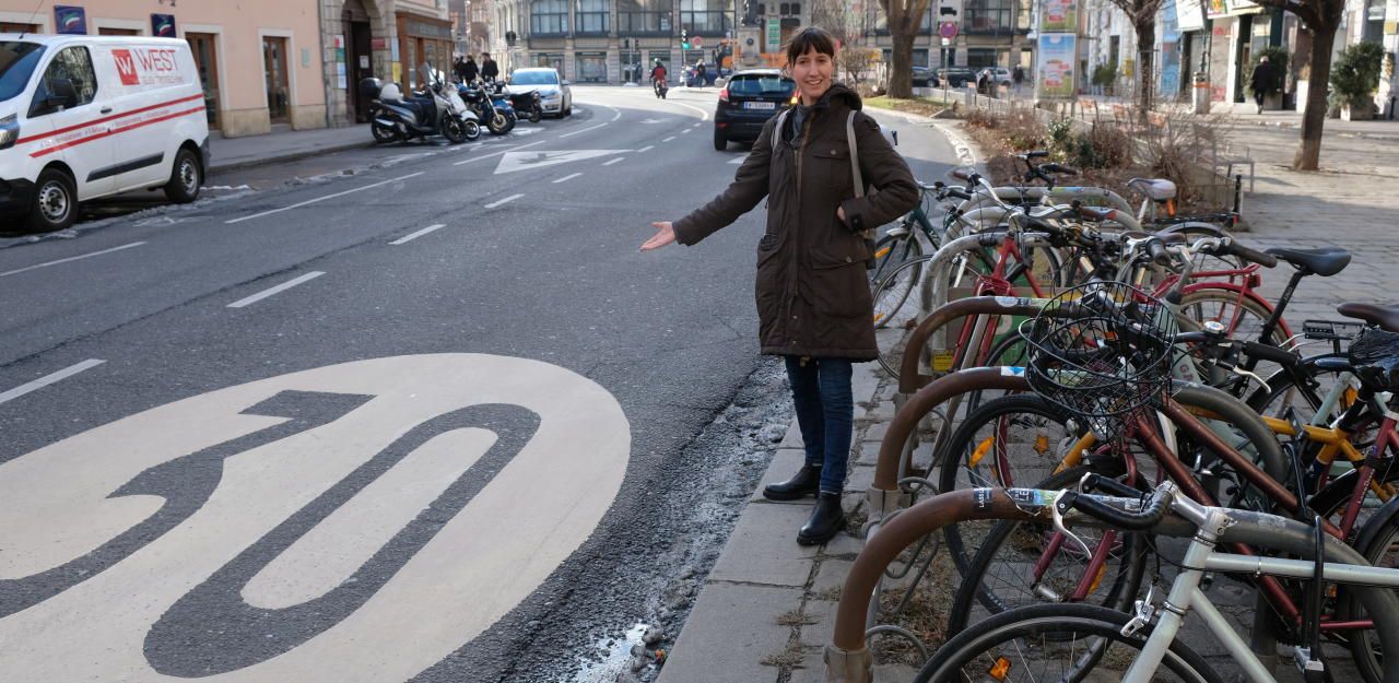 Nikola Furtenbach freut sich über Tempo 30 in Margareten. (Foto: Die Grünen Margareten)