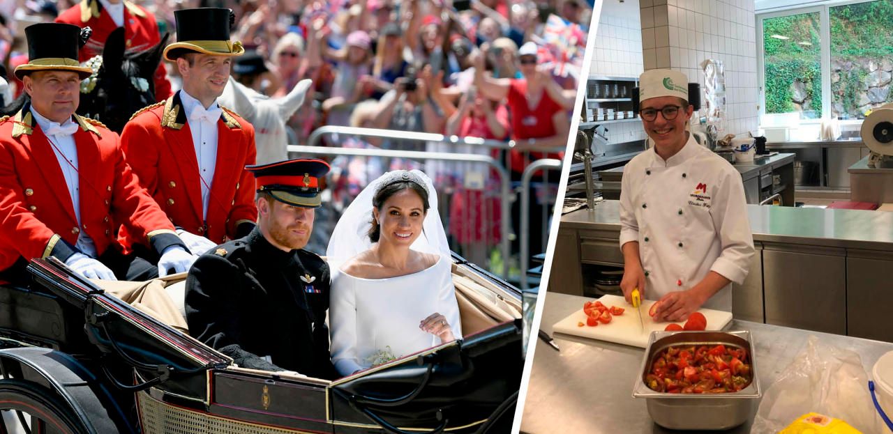 Claudius strahlt in seiner Royal-Jacke: Er kochte für das Paar (l.)