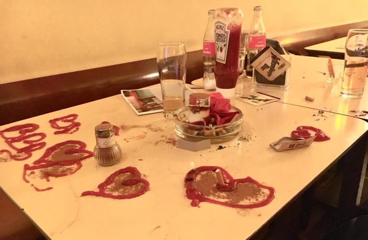 Die Besucher "verzierten" den Tisch mit Ketchup.