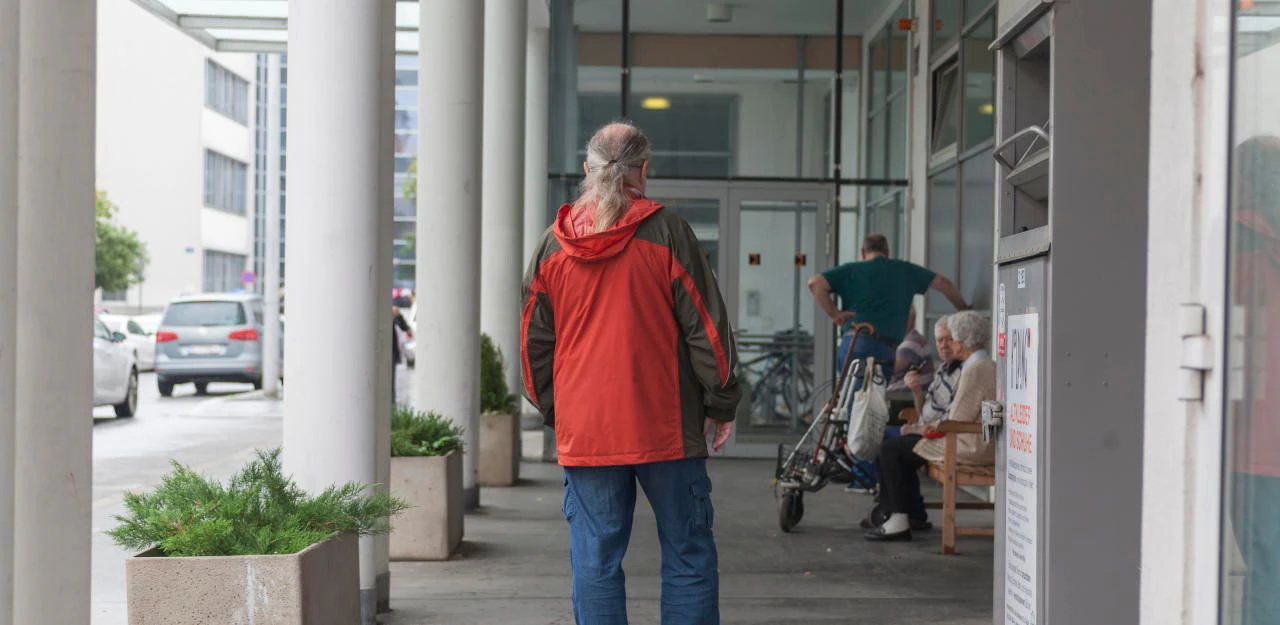 Gerhard H. vor dem Eingang des Favoritner Pflegeheims.