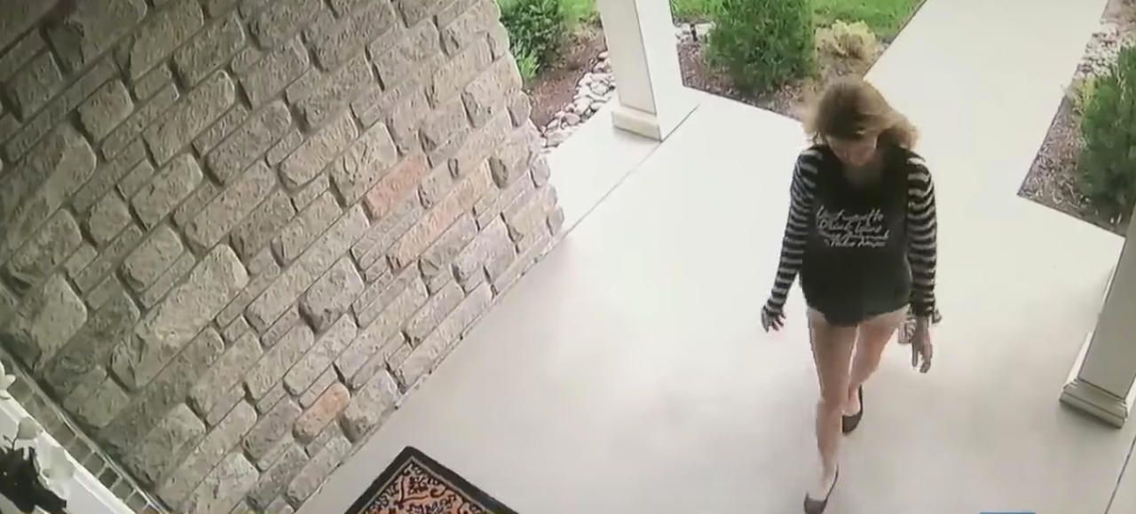 Auf frischer Tat ertappt: Eine Überwachungskamera zeigt Melissa B. (30) beim Diebstahl eines Pakets.