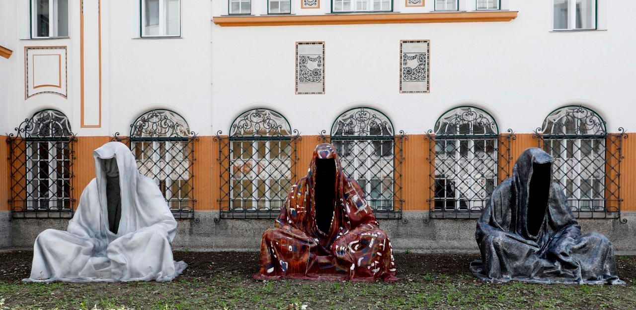 Drei "Wächter der Zeit" werden versteigert. Sie stehen aktuell vor dem Dorotheum.