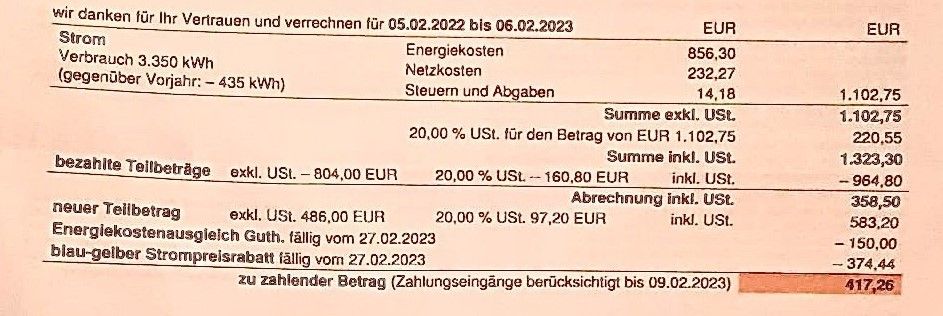Die Jahresabrechnung ist mit einer Nachzahlung sowie einem mehr als doppelt so hohen neuen Teilbetrag verbunden.