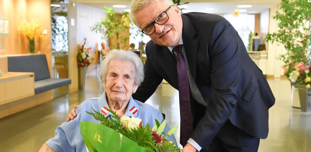 Anna Wiesmayr ist die älteste Österreicherin: Linz-Bürgermeister Klaus Luger gratulierte ihr zum 111. Geburtstag.