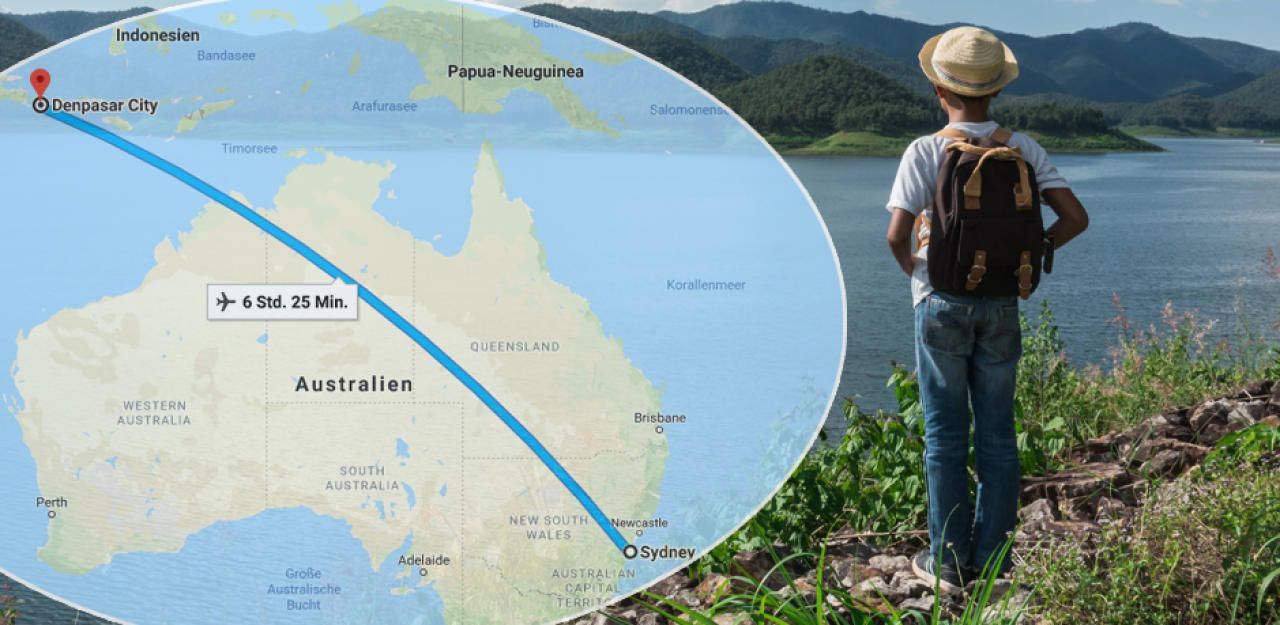 Bub flog alleine von Sydney nach Bali.