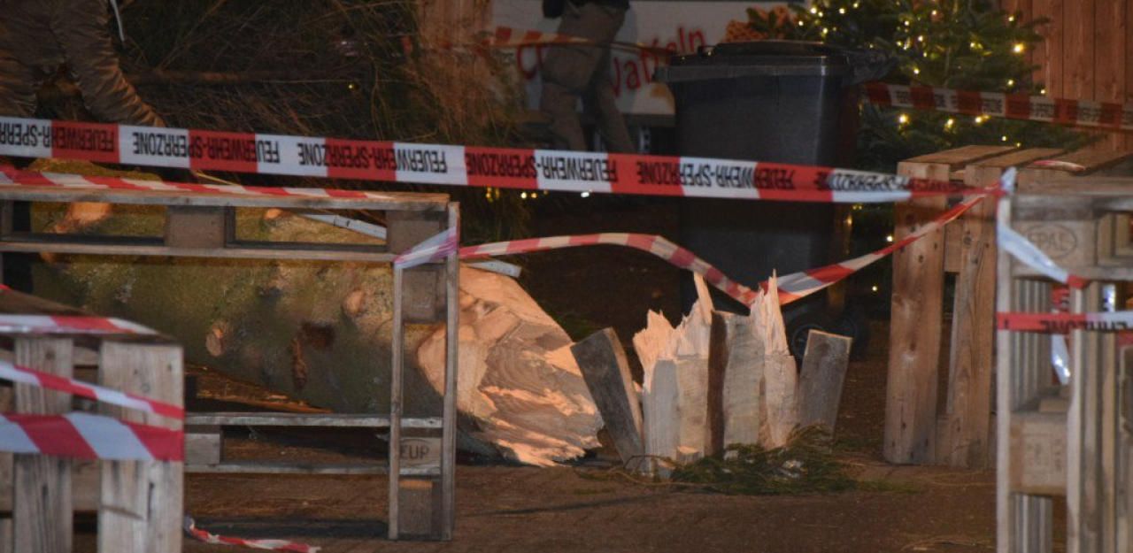 Eine 15 Meter hohe Tanne stürzte auf ein Karussell.