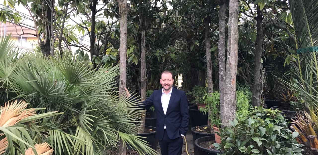 Bernhard Baier inmitten der 150 Linzer Palmen.