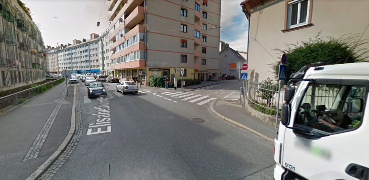 Der Tatort befindet sich im Kreuzungsbereich Elisabethinergasse/Prankergasse in Graz.