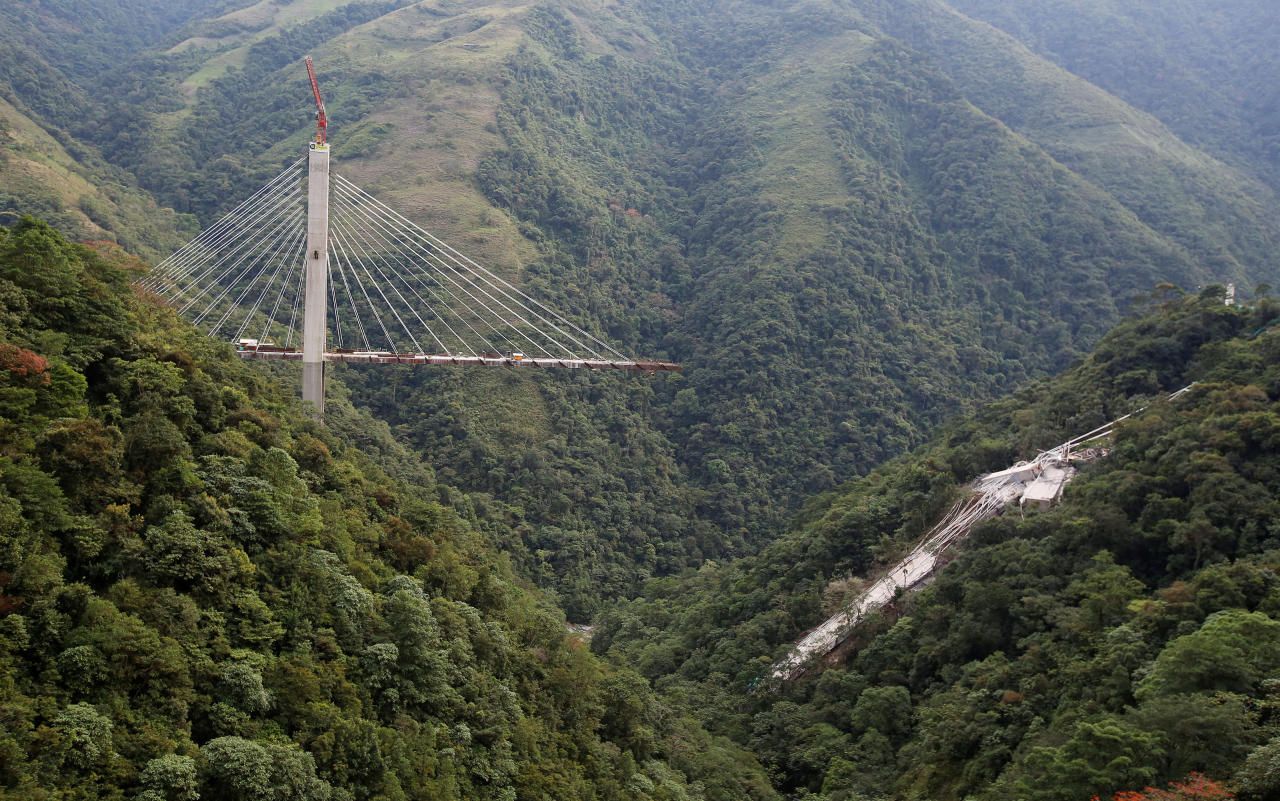 Unfassbar: Die Brücke in Chirajara nahe Bogota (Kolumbien) hätte im März eröffnet werden sollen. Jetzt brach ein 300-Meter-Stück ab. Es gab Tote und Verletzte.