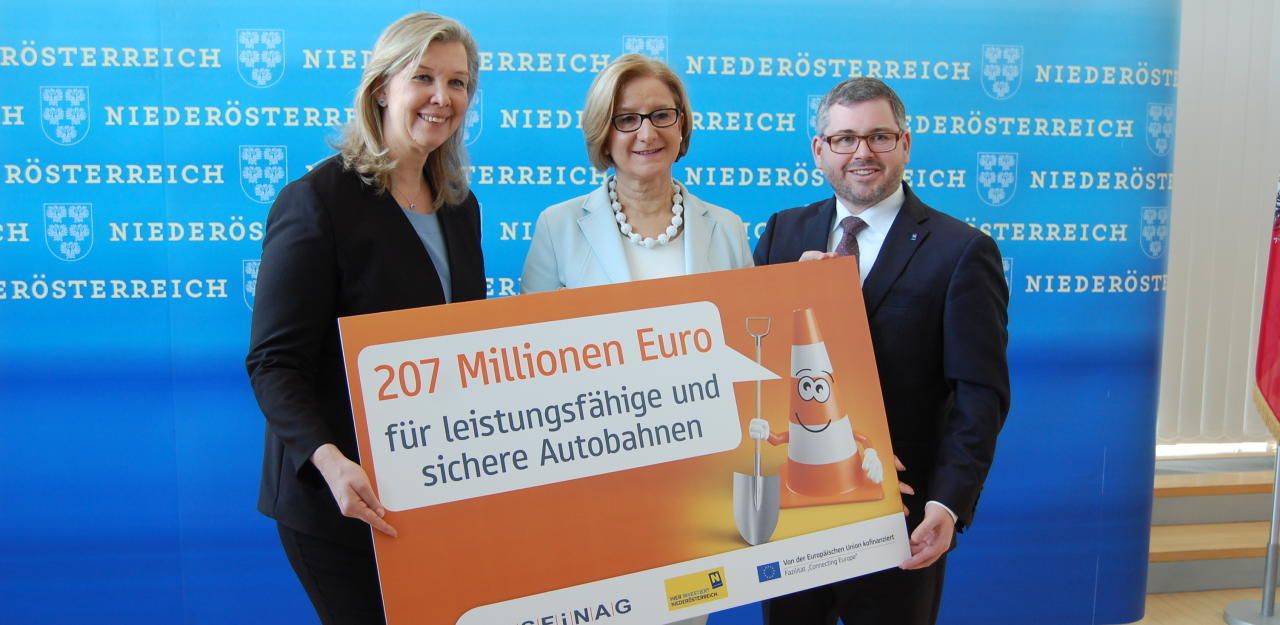 Asfinag-Vorstandsdirektorin Karin Zipperer, Landeshauptfrau Johanna Mikl-Leitner und Landesrat Ludwig Schleritzko informierten über die Straßenbauprojekte in NÖ.