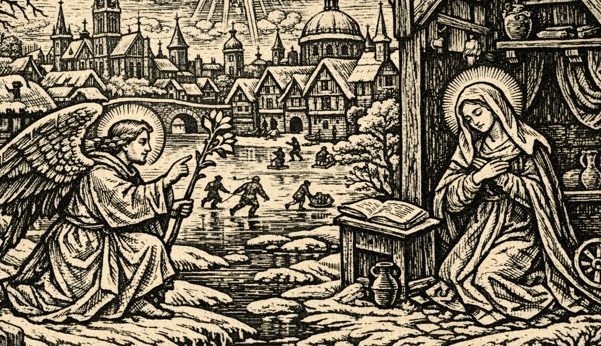 Engel Gabriel überbringt Maria die erfreulichen Neuigkeiten.