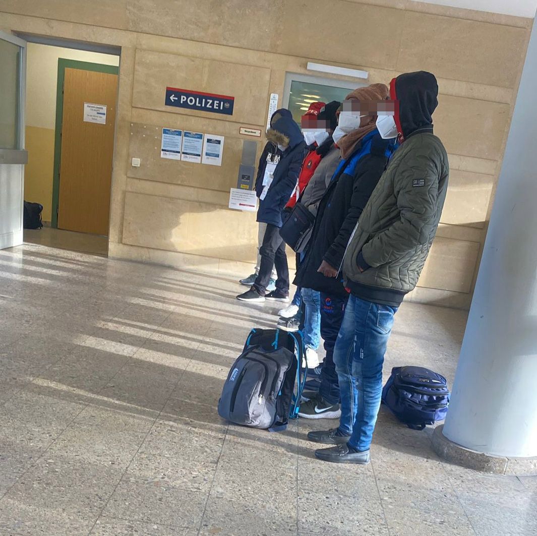Ein Teil der aufgegriffenen Flüchtlinge vor der Polizeistation