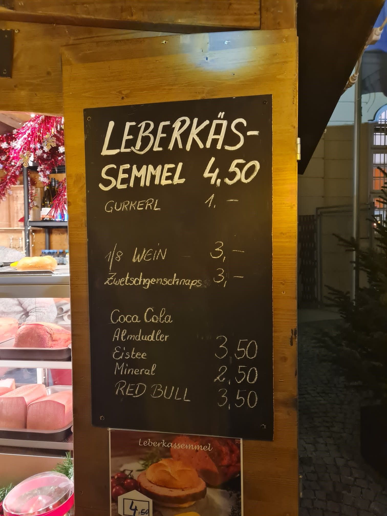 Ein Achterl Wein bekommt man um günstige drei Euro, für die Leberkäs-Semmel muss man schon tiefer in die Tasche greifen.