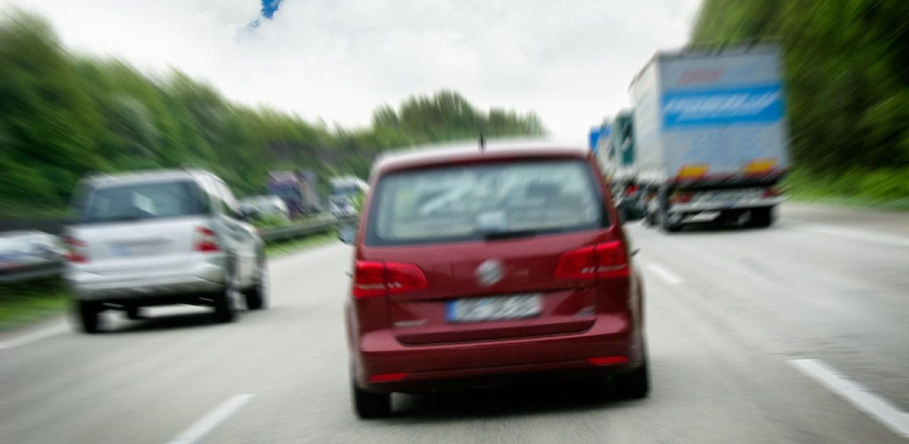 Der Mann sprang auf die Autobahn.