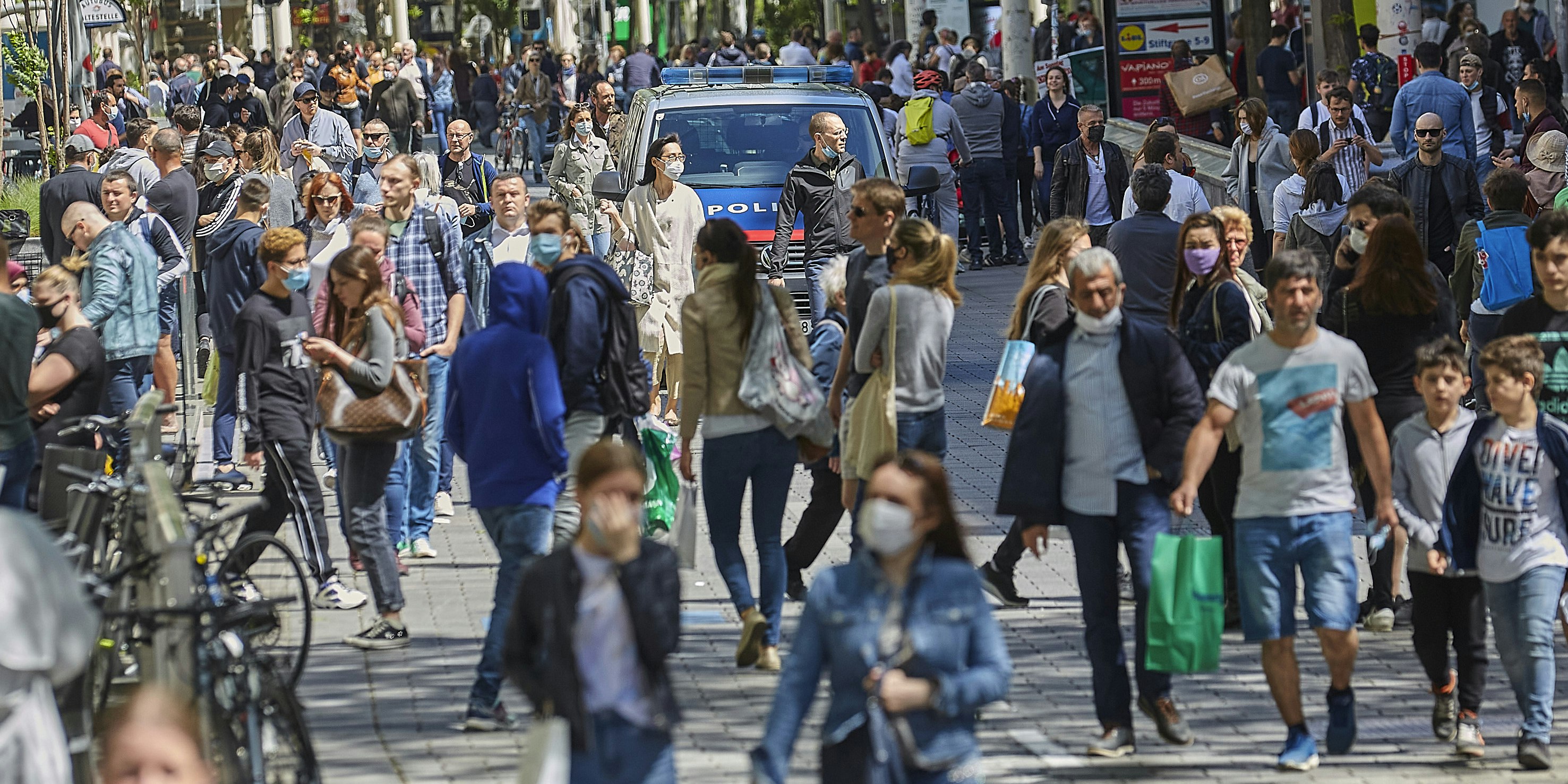 Menschen auf der Mariahilferstraße in Wien.