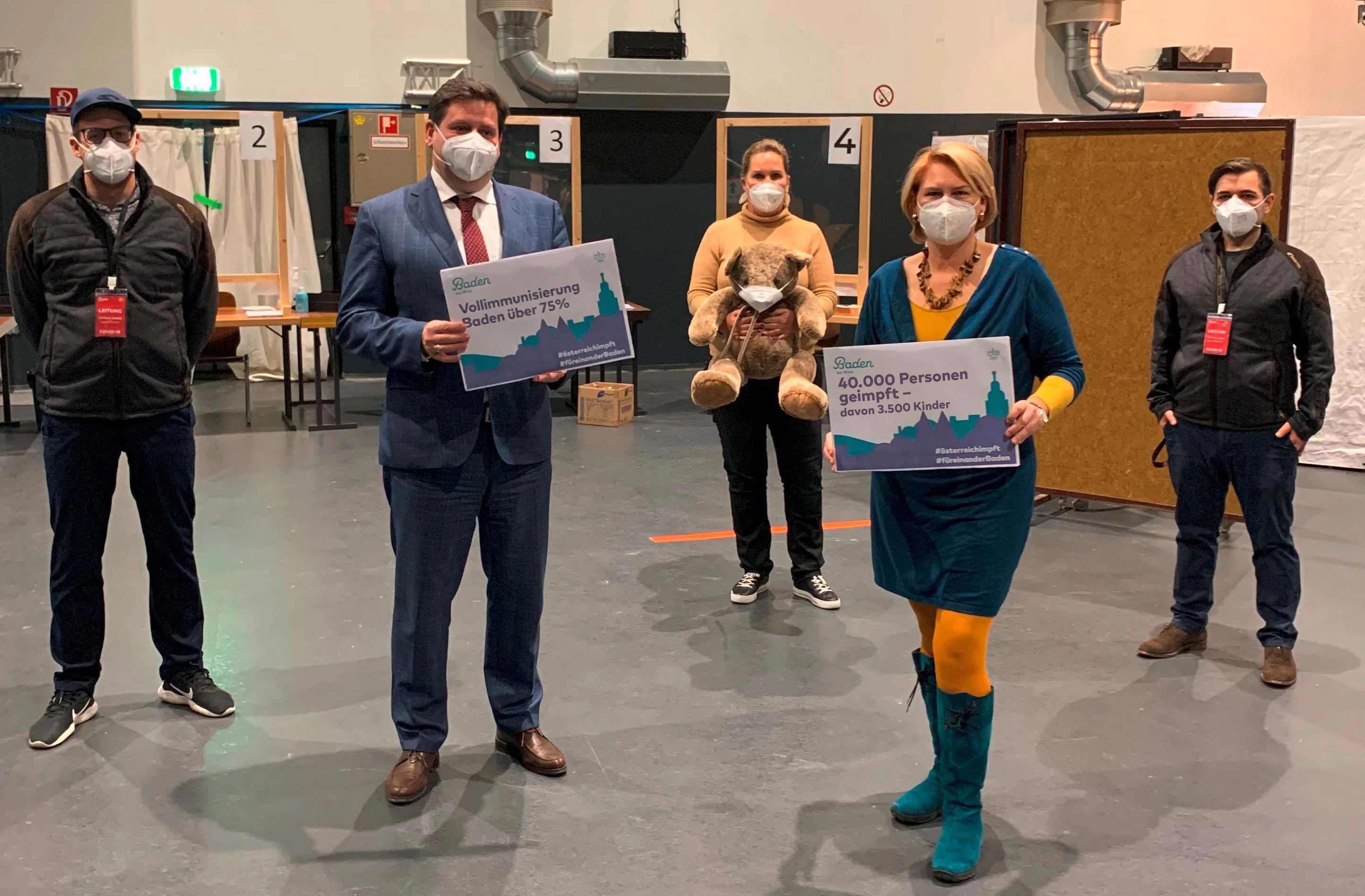 Florian Brand, Bürgermeister Stefan Szirucsek, Impfkoordinatorin Marie-Therese Jutz, Vizebürgermeisterin Helga Krismer sowie Michael Autin.