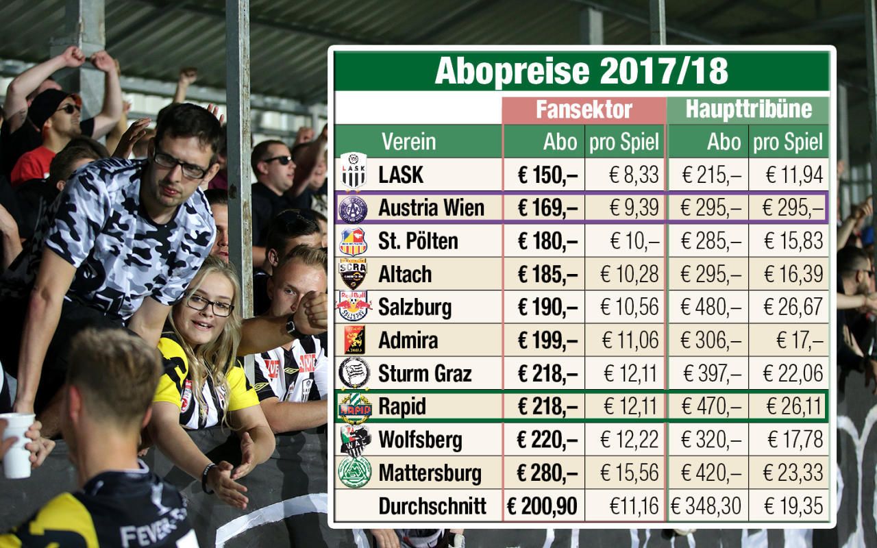 Die LASK-Fans müssen am wenigsten für das Abo zahlen.