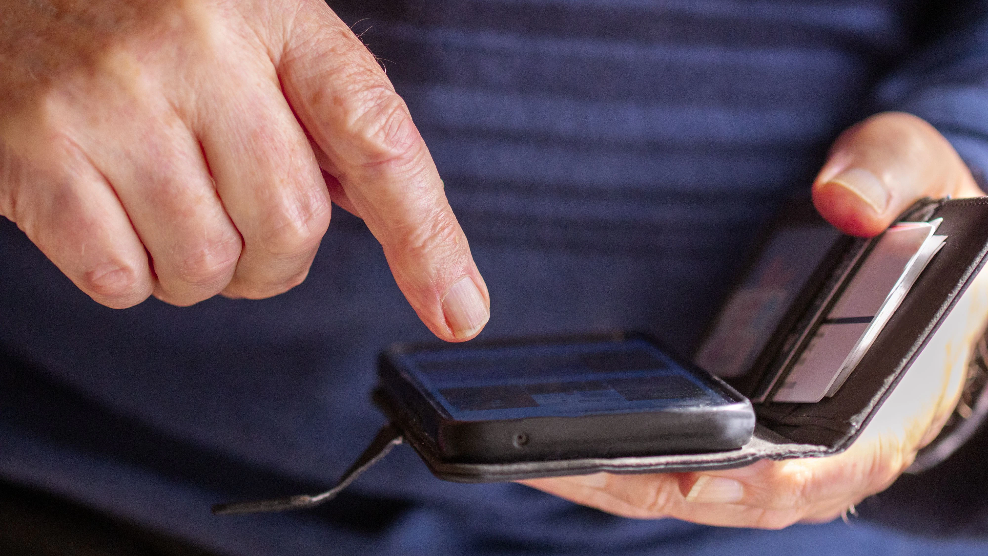 Ein Pensionist zeigt auf sein Handy – eine unerwartete Rechnung bringt ihn um den Schlaf. (Symbolfoto)