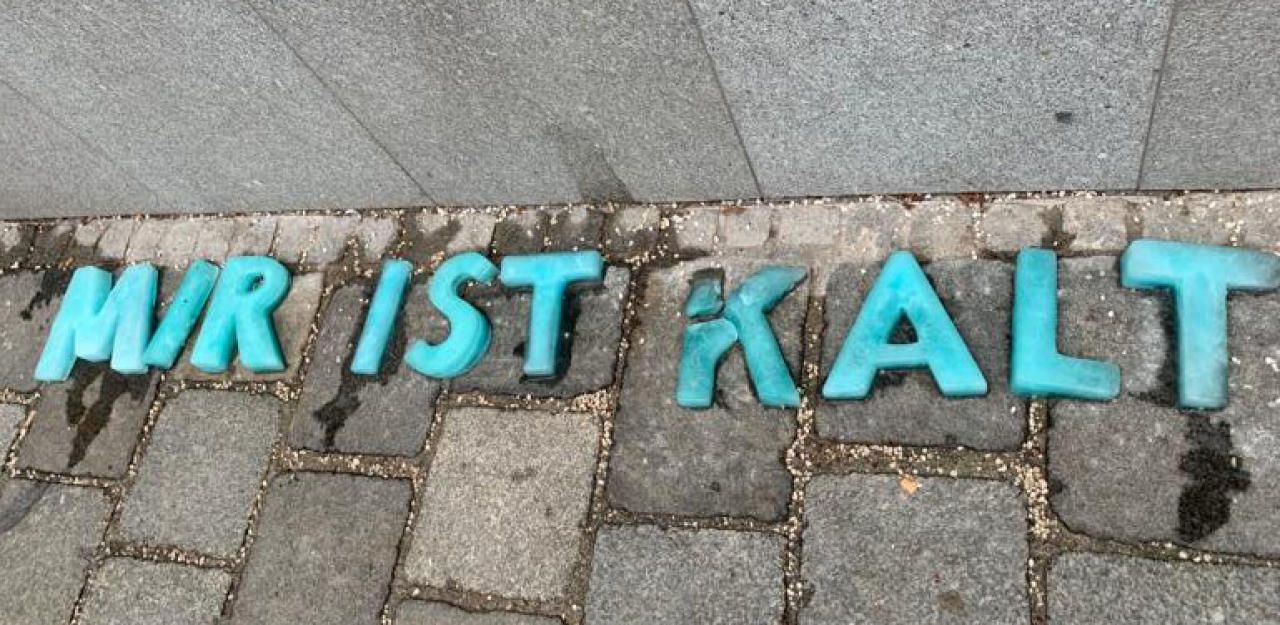 In der Domgasse in Linz wurde ein Schriftzug aus Eis installiert. Was dahinter steckt ist unklar.