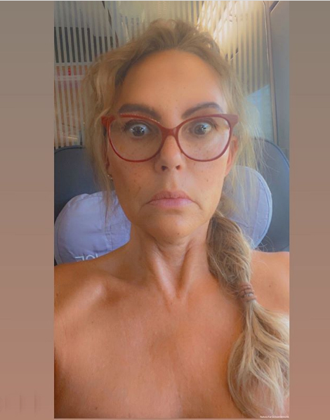 21.05.2020: "Bei gefühlten 35 Grad" zog Natascha Ochsenknecht im Zug nach Köln die Notbremse und sich selbst aus. Erst strippte sie, dann gab's ein Insta-Foto für die Deutsche Bahn: Gewichtsverlust durchs Schwitzen 3,8 Kilo. Die Anzeige wegen 'NACKT' Bahn fahren könnt ihr euch dann bite auch sparen", ätzte sie. Besonders lustig ist allerdings der Hashtag #derHinternklebtfest