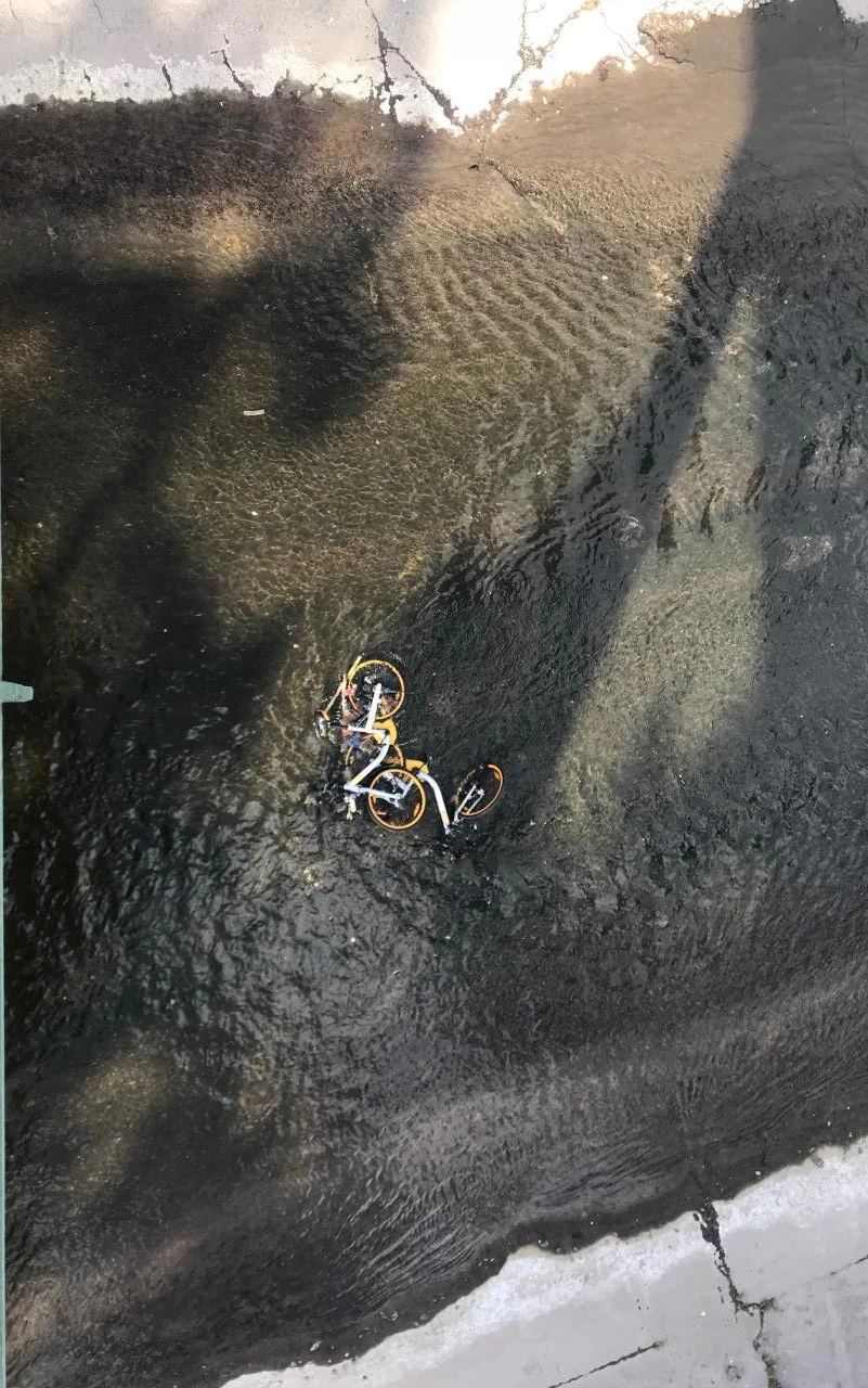 Schon wieder sind zwei Leihräder im Wienfluß Höhe Stadtpark gelandet.