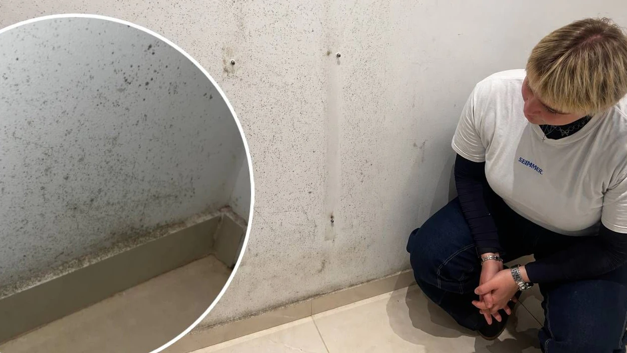 In der Wohnung von Elgin und ihrem Partner Maris kämpfen sie mit Schimmel in ihrer Toilette.