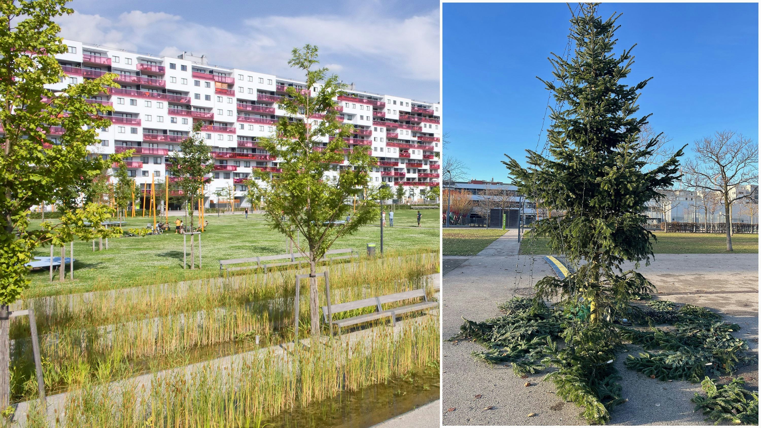 Die Jugendlichen rissen im Rudolf-Bednar-Park die Äste des Weihnachtsbaumes (r.) aus.