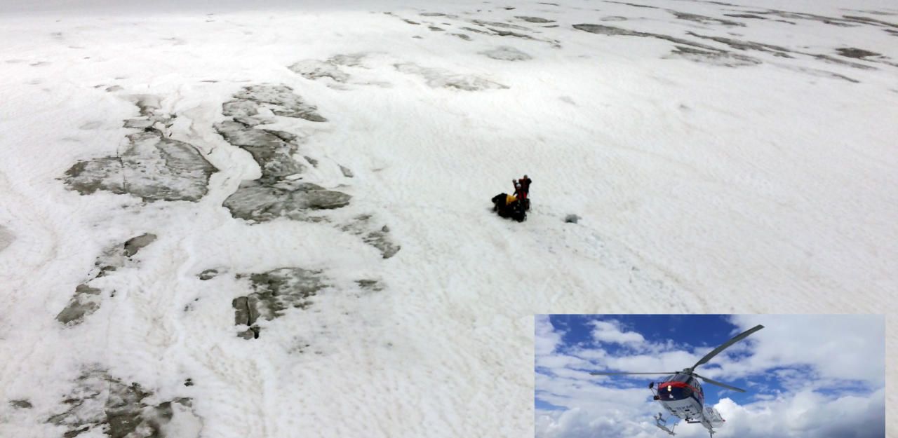 Personenrettung am Gepatscherferner Gletscher nach Sturz in Gletscherspalte.