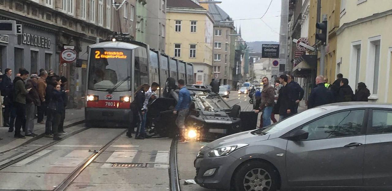 Autounfall 16.Bezirk Auto liegt auf Dach Person eingesperrt