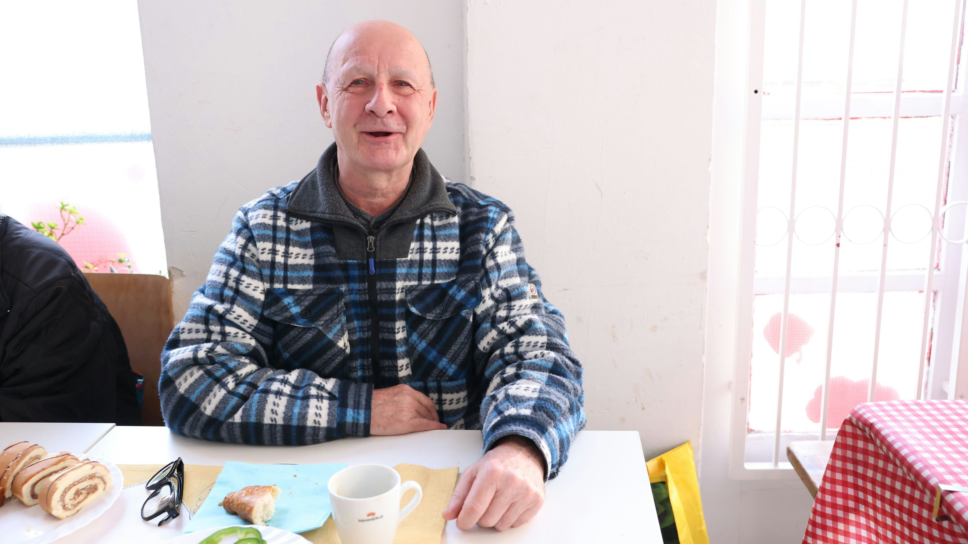 Der Wiener Pensionist freut sich über die neue Plauderecke im Sozialmarkt Böckhgasse.