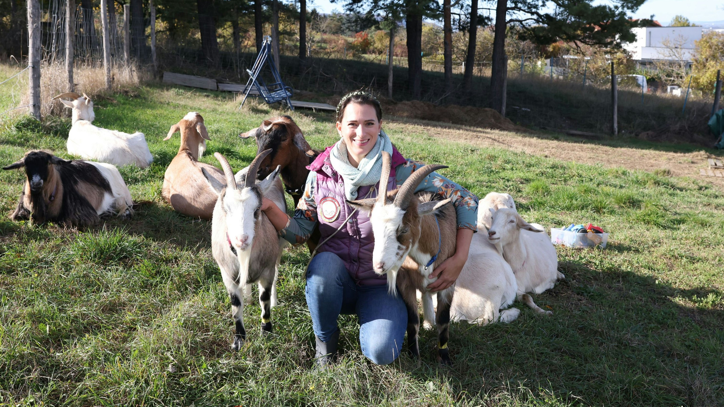 Linda Gröbl und ihre "Meckerer": Die 40-jährige lebt mit ihrem Mann, drei Kindern und acht Ziegen in Hagenbrunn.