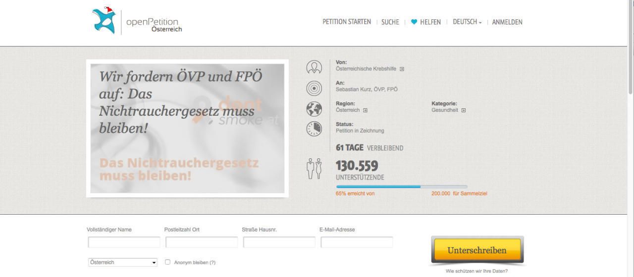 "Nichtrauchergesetz muss bleiben": Mehr als 130.000 Unterschriften in eineinhalb Tagen