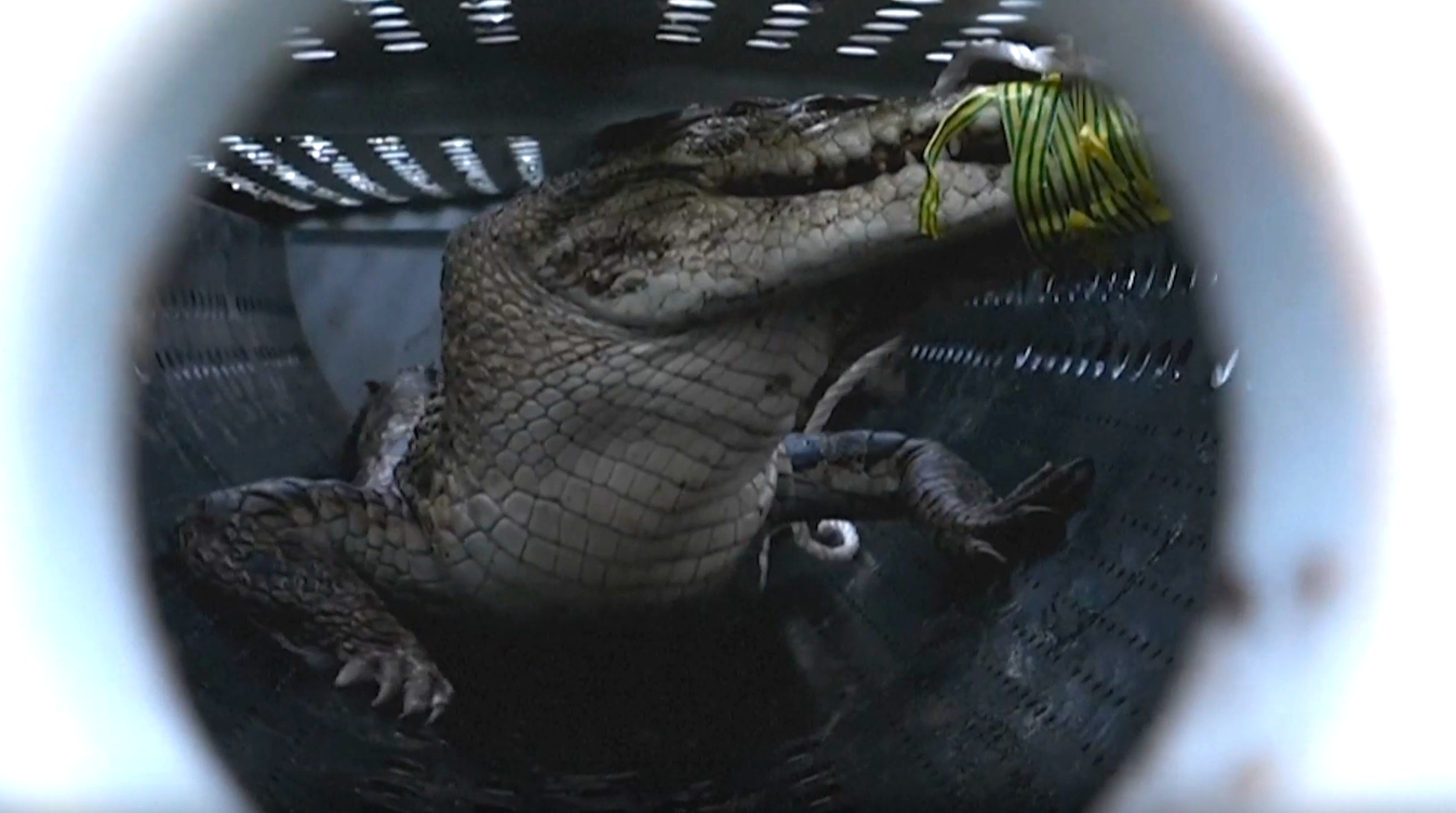Obwohl sich das 2,5 Meter lange Tier nach Kräften wehrte, konnte es von Helfern eingefangen werden.