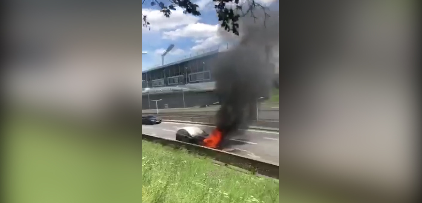 Ein Auto ging am Mittwochnachmittag am Verteilerkreis in Flammen aus