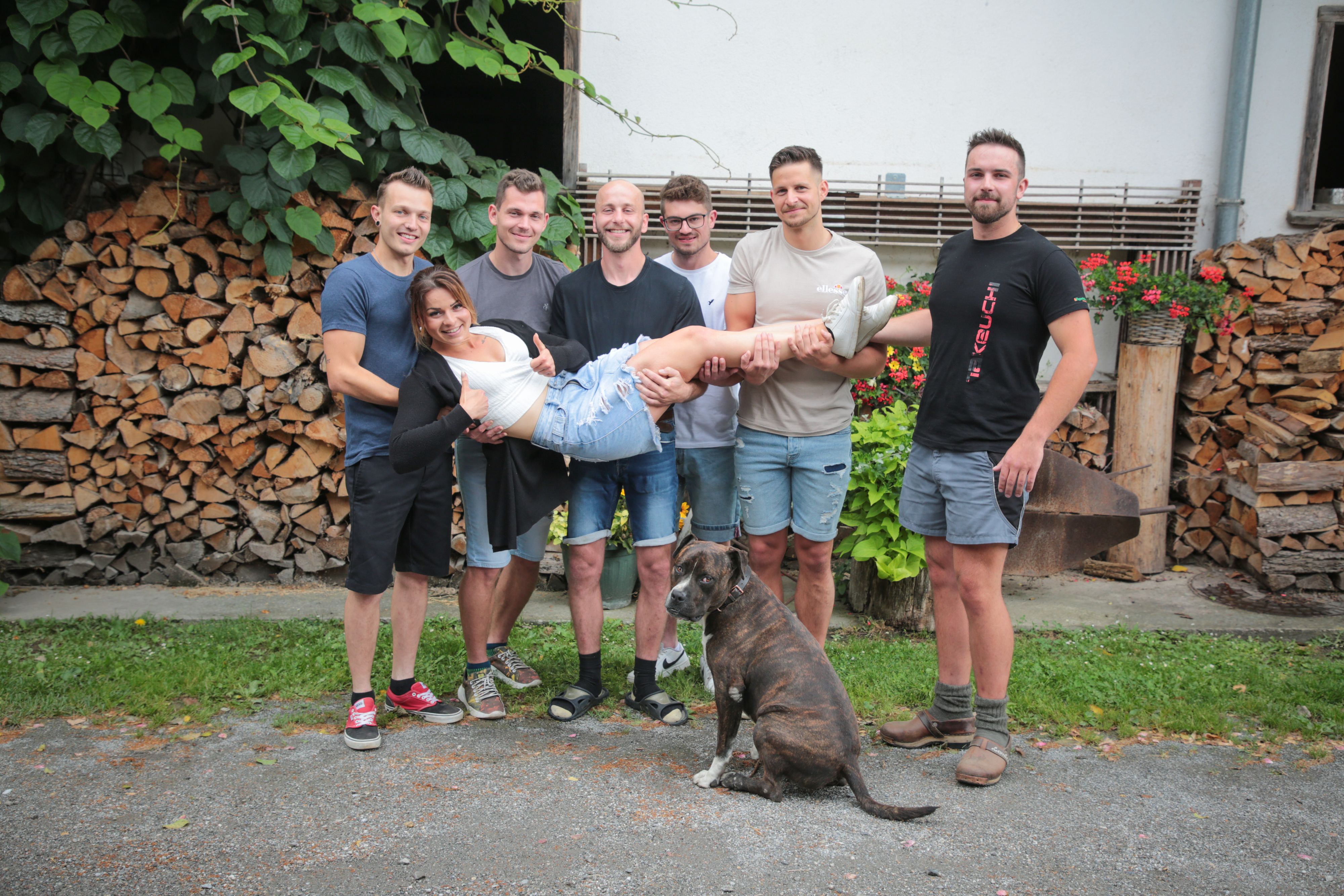 Eine Bäuerin, Hündchen Chasper und gleich sechs Hengste