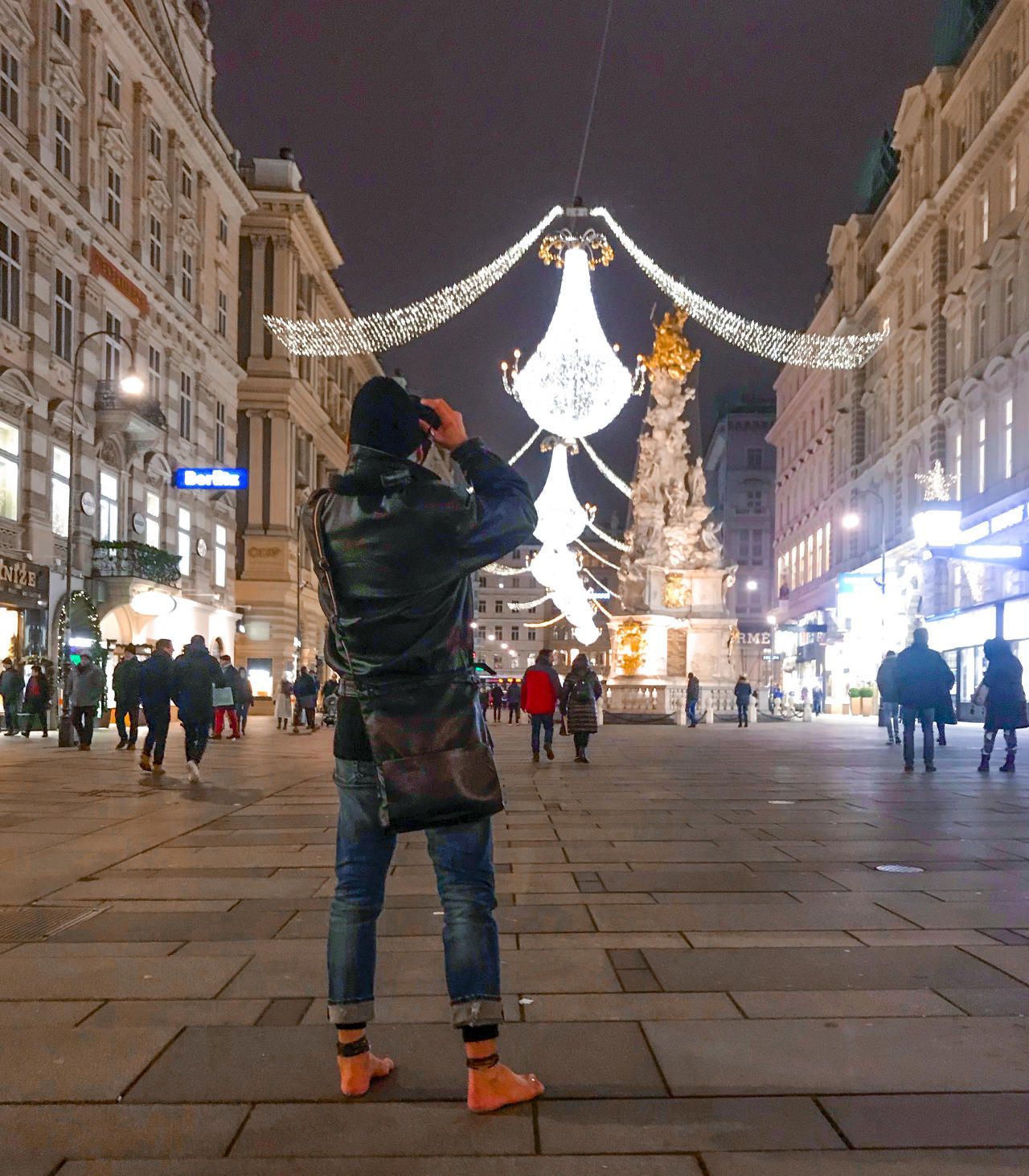 Ein Unbekannter war ohne jedes Schuhwerk bei eisigen Temperaturen am Wiener Graben unterwegs.