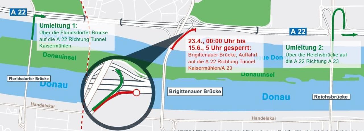 Die gesperrte Auffahrt bei der Brigittenauer Brücke