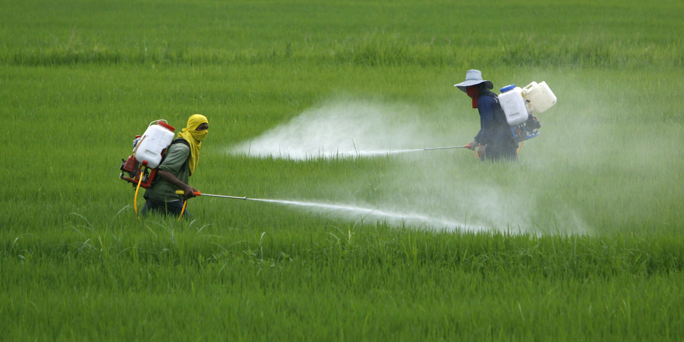 Reisbauern in Thailand besprühen ihre Felder mit Pestizid. (Symbolbild)