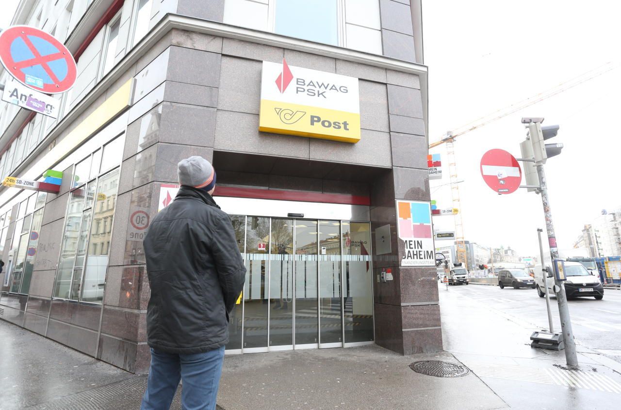 18 Tage auf Überweisung gewartet: Bankkunde Peter P. (36) vor der BAWAG-Filiale in der Pilgramgasse (Margareten).