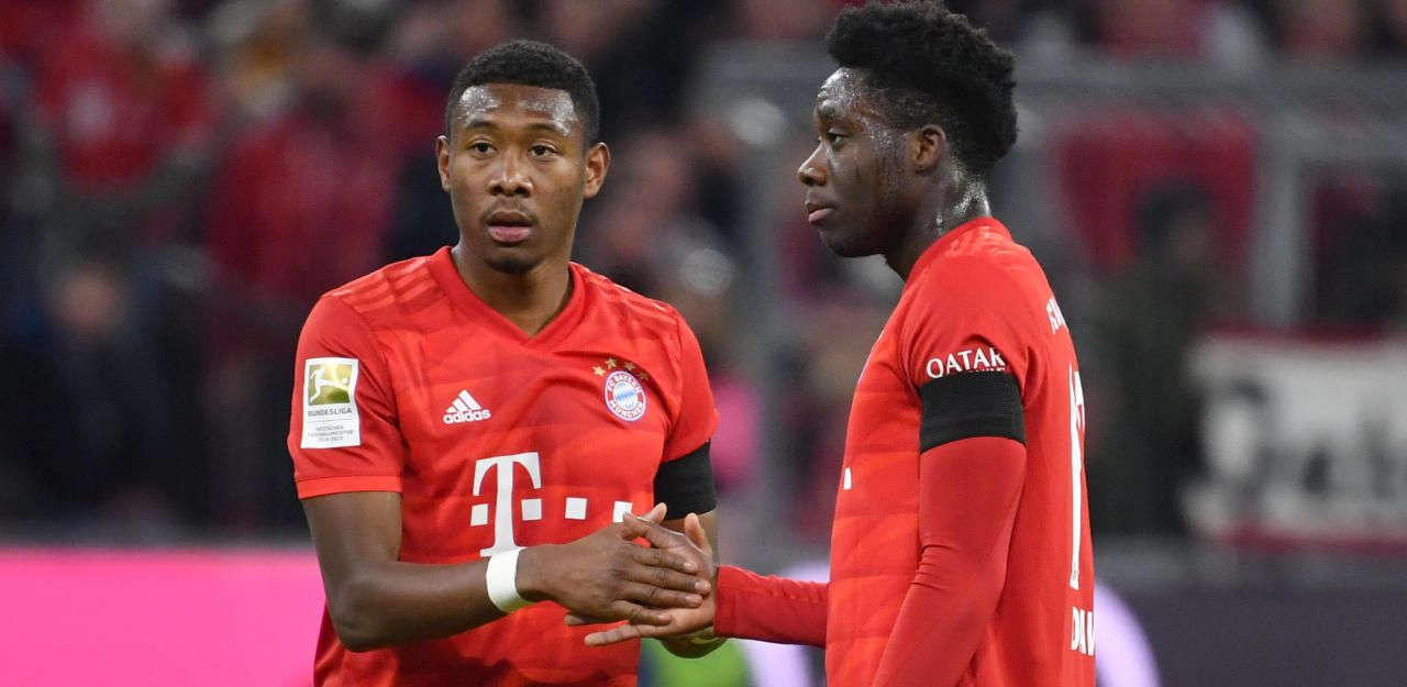 David Alaba mit seinem Teamkollegen Alphonso Davies.