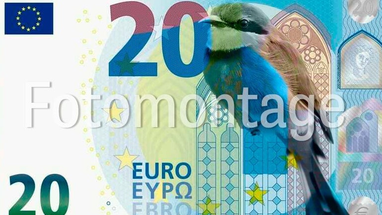 Große Ehre für den Bienenfresser: Der bunte Zugvogel könnte am neuen 20-Euro-Schein landen (Fotomontage).