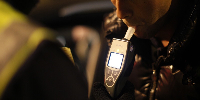 Ein Mann wird von Polizisten zum Alkotest gebeten. (Symbolbild).